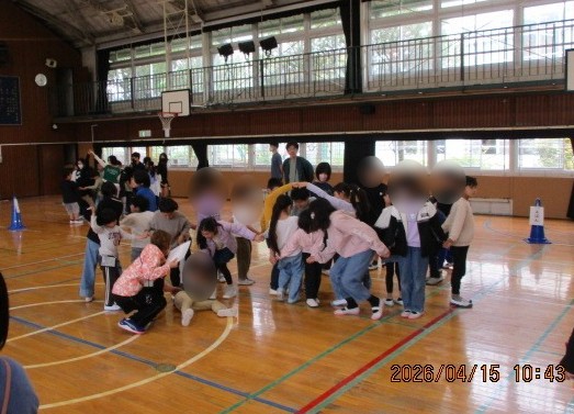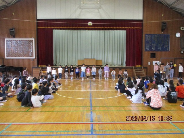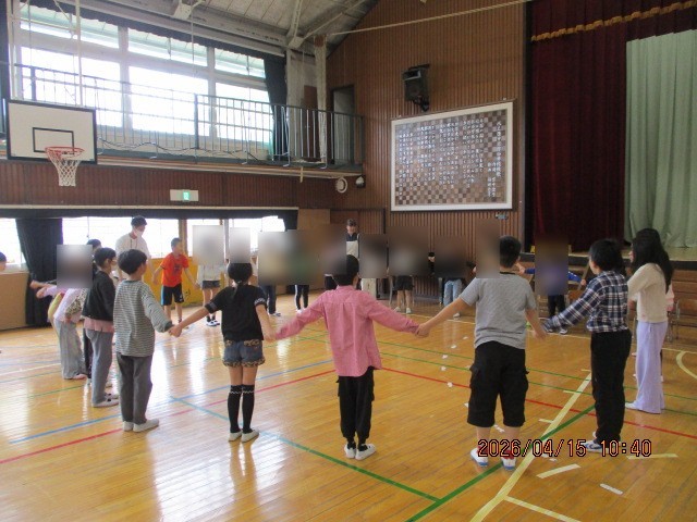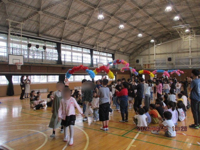 一年生を迎える会が行われました。クイズやゲームなどをして、一年生の入学を在校生全員でお祝いしました。
