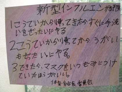 必ず『手洗い うがい』するようにポスターを書いてくれました。