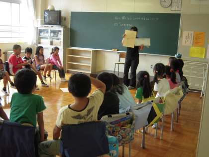 読書指導『アニマシオン』を学習していました。「耳で聞く練習」で物語を楽しく読む学習でした。これから始まる。。。楽しみわくわく、の時の写真です。