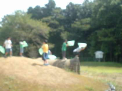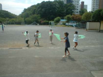 さっそくビニル袋をもって校庭に走り出た子どもたち。
