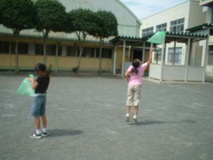 「袋がやぶけた〜!」「まんぱんに空気がはいらないよう!」と大騒ぎですが、こんな体験からすばらしい発見があるものなのです。次の時間が楽しみです。