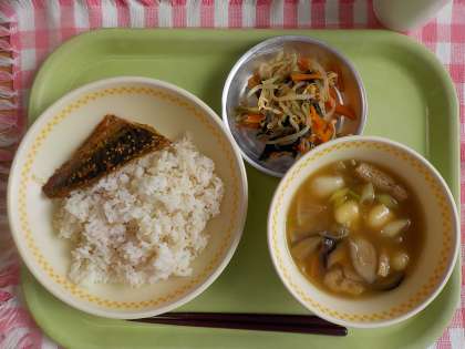 それに伴い、今日の給食ではお月見団子汁を提供しました。