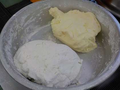 カボチャで色づけした黄色いお団子と白いお団子の二色を作り野菜の沢山