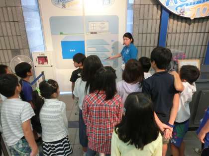 今日は、都内見学。曇りがちの天気でしたが、何とか雨に降られず行ってくることができました。始めは、臨海副都心にある水の科学館へ。1学期に学習した「水道」について復習とまとめの学習ができました。都内ではここだけが見学可能な地下給水所も見ることができました。