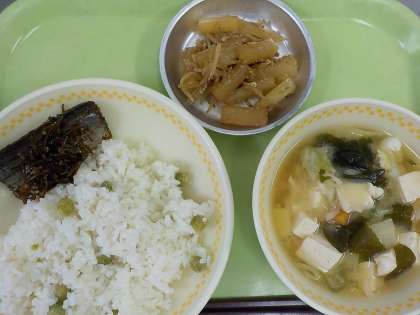 ・グリンピースご飯...2年生がさやむきをしてくれました♪