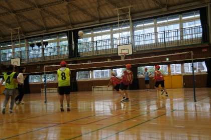 ソフトバレーボールの練習をしています。