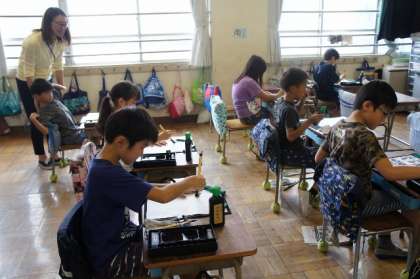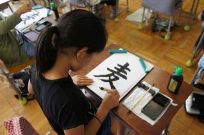 プール中止となり、書写の時間となりました。