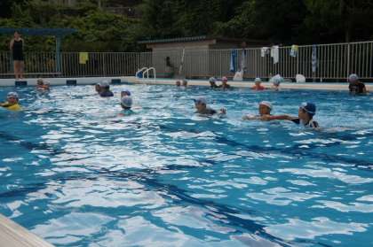 衣服を着たままで歩いてみたり、ペットボトル浮きをしたりしました。