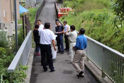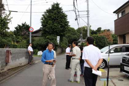 市職員、警察署、地域住民、保護者の方々と通学路点検を実施しました。