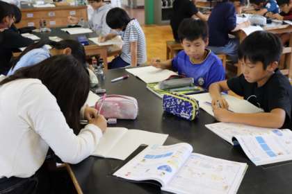 水溶液の性質の学習をしました。学習のまとめの場面です。