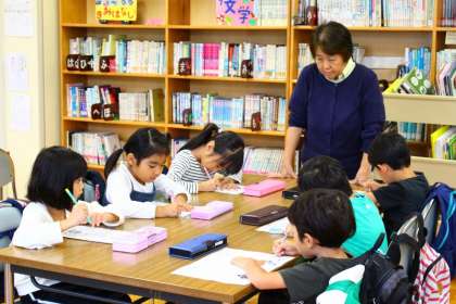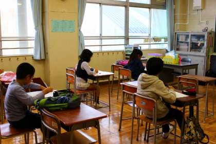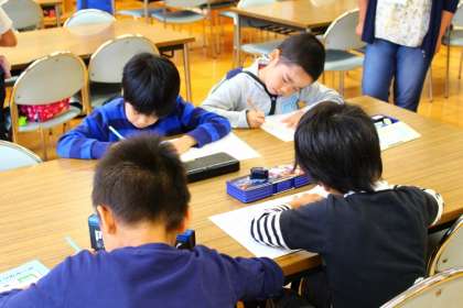 低学年コースと高学年コースに分かれて、漢字の練習からスタートです。