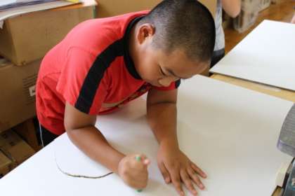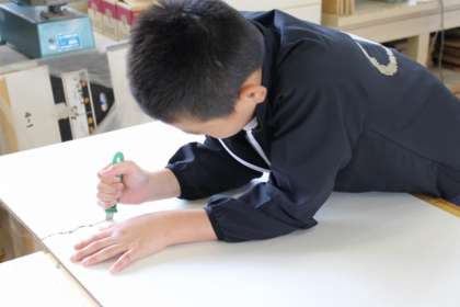 糸のこドライブ、大きな段ボール紙と格闘中。