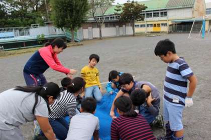 ボランティアの皆さんです。ご指導よろしくお願いします。網を片付けました。
