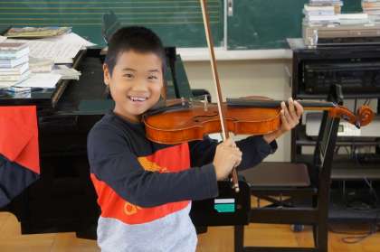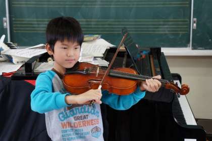 バイオリンを弾くお坊ちゃまです。