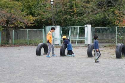 子どもたちと遊ぶ先生。
