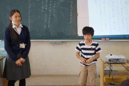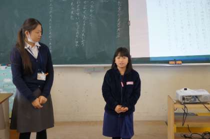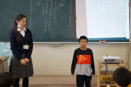 暗記した和歌をみんなの前で発表しました。