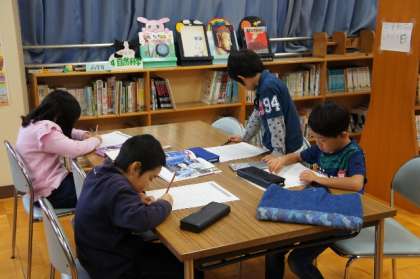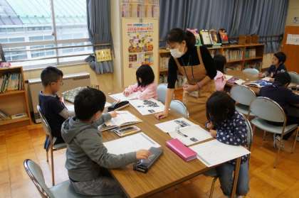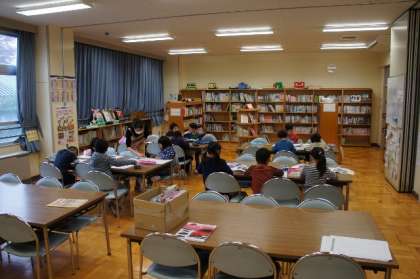 図書室にて、グループで調べたい自動車をきめ、「しごと」と「しくみ」について調べました。