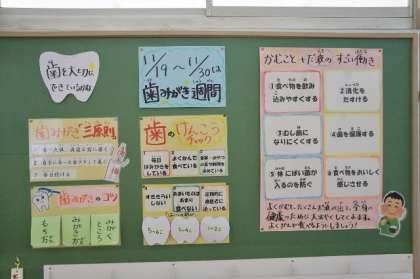 来週からスタートする「歯みがき週間」「走ろう週間」の準備が進められています。