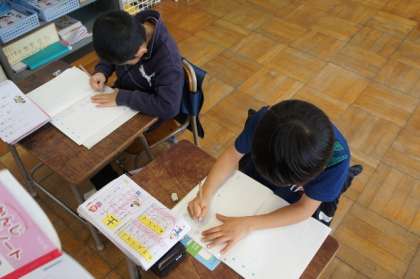 しっかりと漢字練習をしています。