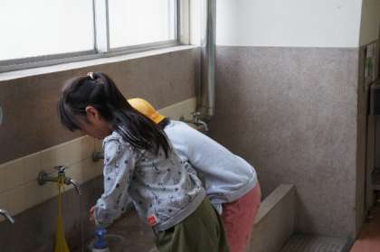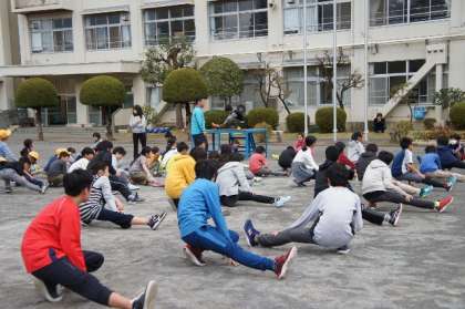 準備運動、整理運動をしっかりと行います。走った後は手洗い・うがいをします。