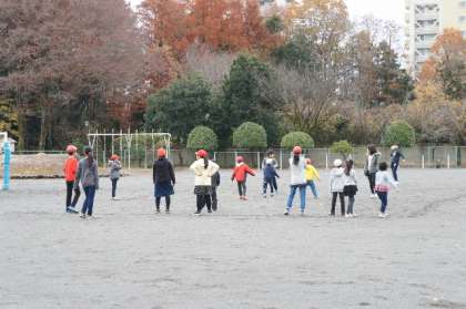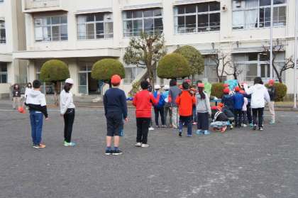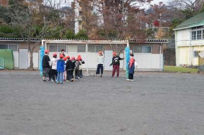校庭で各たてわりグループで遊びました。