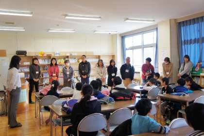 図書室にて、はじめのあいさつ。本日のスタッフの方々を紹介しています。よろしくお願いします。