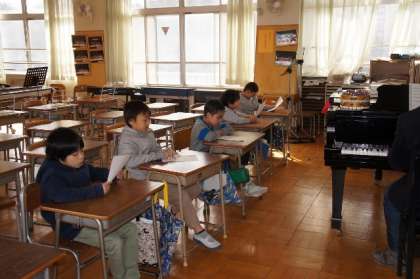 来週の20日(水)に来校する東京ウエストインターナショナルスクールの児童と一緒に歌います。
