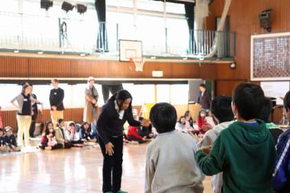 音楽交流会のはじまり。東京ウエストインターナショナルスクールの音楽の先生、校長先生(ピアノ伴奏)。