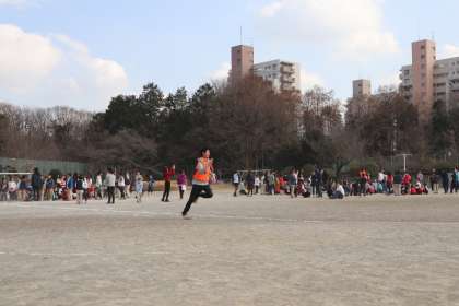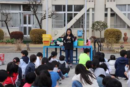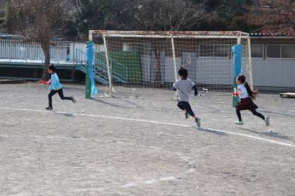 たてわり班対抗リレーを行いました。最後に6年生の児童挨拶がありました。