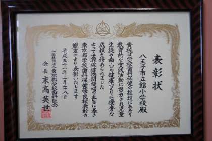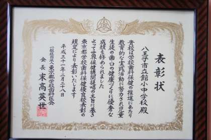 館小学校、館中学校ともに、東京都学校歯科医会より「学校歯科保健優良校」の表彰を受けました。