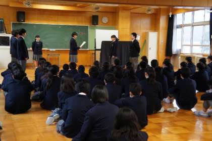 表彰、各委員会から、特別企画「3年生の思い出スライドショー」。