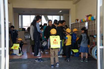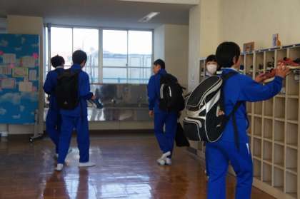 みんな元気に登校。中学部はジャージ登校です。