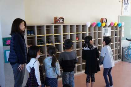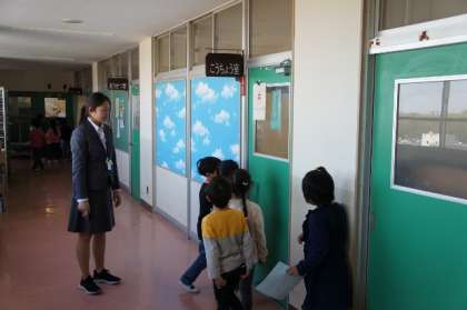 学校たんけん。1年生を案内する2年生。頼もしい!