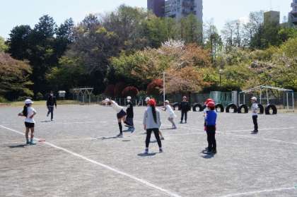 徒競走のタイムを計測した後は、ゲームで体を動かしました。