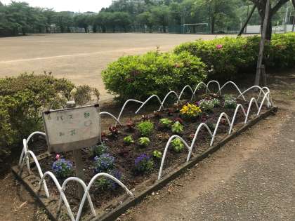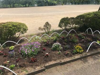 昨日のバスケットボール部に引き続き、野球部も朝練習の時間に花壇に花を植えました。