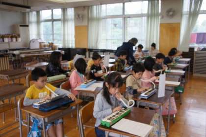 鍵盤ハーモニカ「すいかのめいさんち」を練習しています。