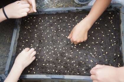 ※づくり「種まきをしよう」。6名のボランティアの方にご指導いただきました。ありがとうございました。