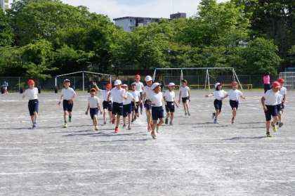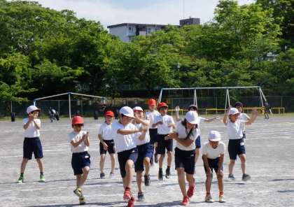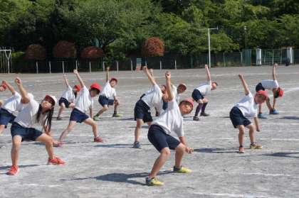 校庭にて、表現運動の練習をしました。とてもいい表情をしています。
