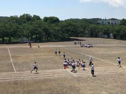 運動会では、中学部全校生徒男女別の全員リレーを行います。