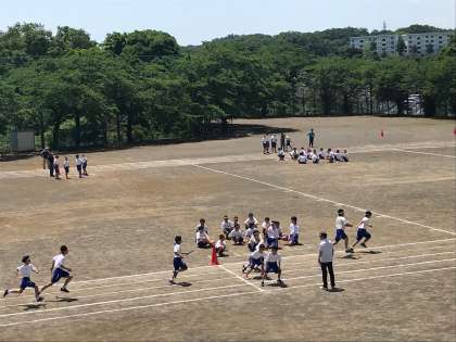その後、各クラスでバトンの受け渡し練習などを行いました。
