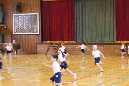 体育館を思いきり走り回りました。