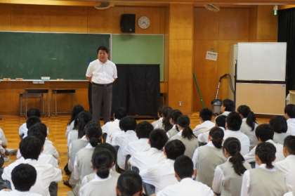 校長講話から・・・「『命の大切さ』についてのお話を続けます。自分の体験や身近な出来事からも「明日のことは誰にもわからない」ことを痛感しています。一日を振り返り「今日は笑顔でいられたかな?仲間に優しくできたかな?」そして「明日も楽しくしていこう」というリズムをつくってください。自分も大切、他人も大切にしてこそ「命の大切さ」を感じることができます。修学旅行・職場体験・スキー教室等で実感していきましょう。