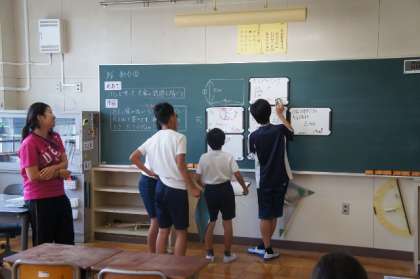 3年社会の地図の学習、4年音楽「まきばの朝」(鑑賞曲)、6年算数「割合」