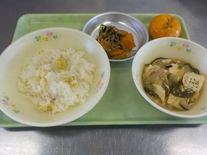 今日の献立・栗ご飯・肉豆腐・おかか和え