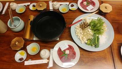本日は豪華、すき焼きの夕食です。