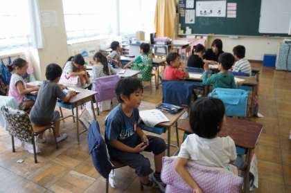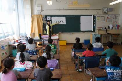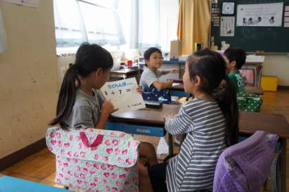 「くり上がりのあるたし算」ペアになり、さくらんぼ計算の説明をしています。