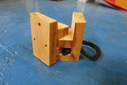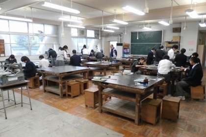 木工細工で下駄の模型を作ってます。表面をつるつるにするのと、下駄の歯がきちんとかみ合うようにやすりがけをしています。