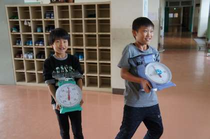 重さを数で表そう。はかりを用いて重さを正しく測定しました。