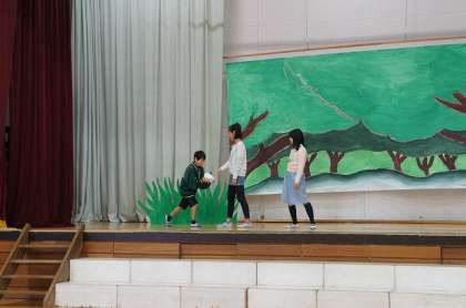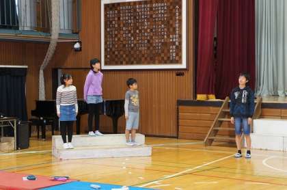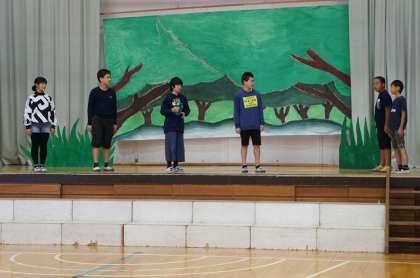 舞台練習 立ち位置の確認や効果音とのタイミングを中心に練習しています。