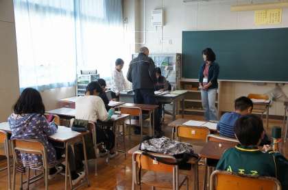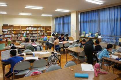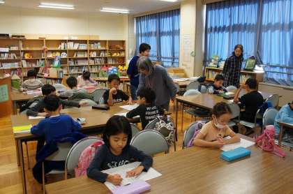 2つのグループに分かれて漢字・計算にチャレンジです。